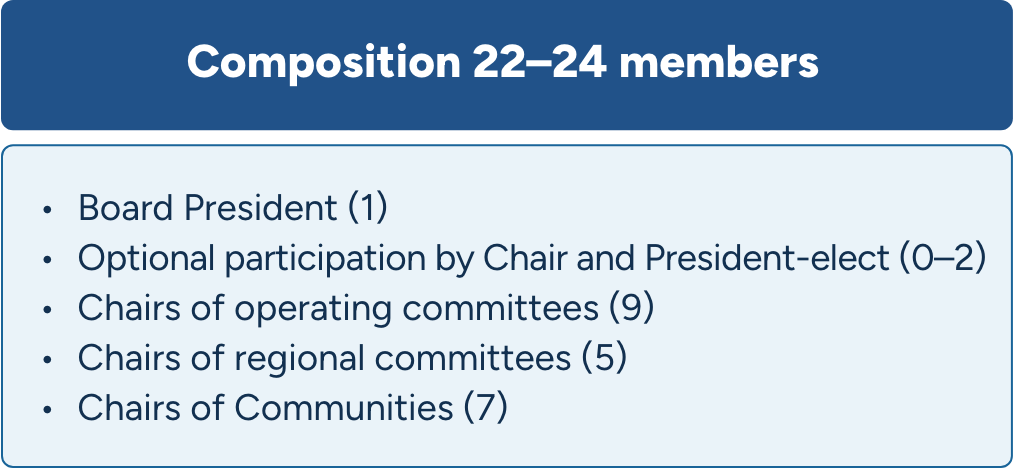 Currently, the Board has 18 members, which is large compared to most association Boards and doesn’t align with leading practices. A large Board hinders effective participation and discussion and debate of key issues, leading to slower decision-making.